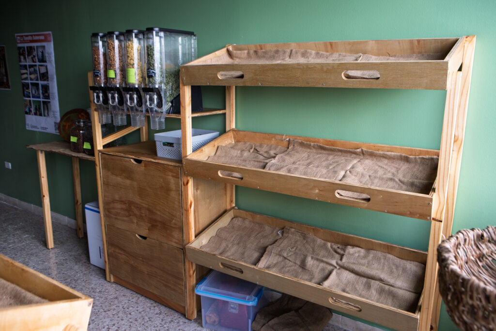 In San Lorenzo the 10K community investment and 17 solidarity work brigades resulted in the completion of La Tiendita Soberana, a community initiative shop that offers artisanal products, fresh fruits and vegetables on a small scale, promoting healthy eating and local commerce in the area. There we assisted with the completion of custom furniture made from plywood and pine ensuring an organized, functional, and accessible space that brings sustainable development for small scale farmers.