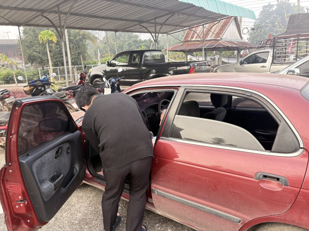 Our refurbished Suzuki sedan has proven especially helpful for transporting elders who cannot easily climb into the trucks normally used for field visits.