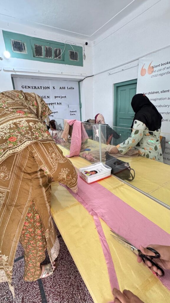 Another participant, Nasreen, said, “This work has given me confidence. Before, I was afraid to speak in front of others. Now, I help teach newer women how to make the puppet kits. I feel proud every day.”