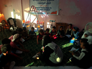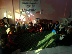 Support activities for a child-friendly community center in a conflict-affected area, providing a safe space for learning, recreation, and social support.