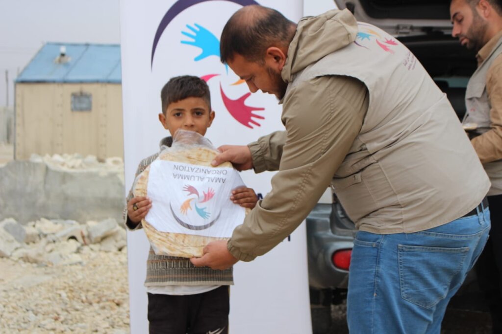 Within this context, our teams distributed bread to the family of child Muhannad, who lives with his family in a simple tent on the outskirts of Kafra village in northern Syria. The family relies on a very limited source of income, as Muhannad’s father works in agricultural labor for a low and irregular daily wage, which is insufficient to meet essential living requirements, especially amid rising prices and scarce job opportunities.