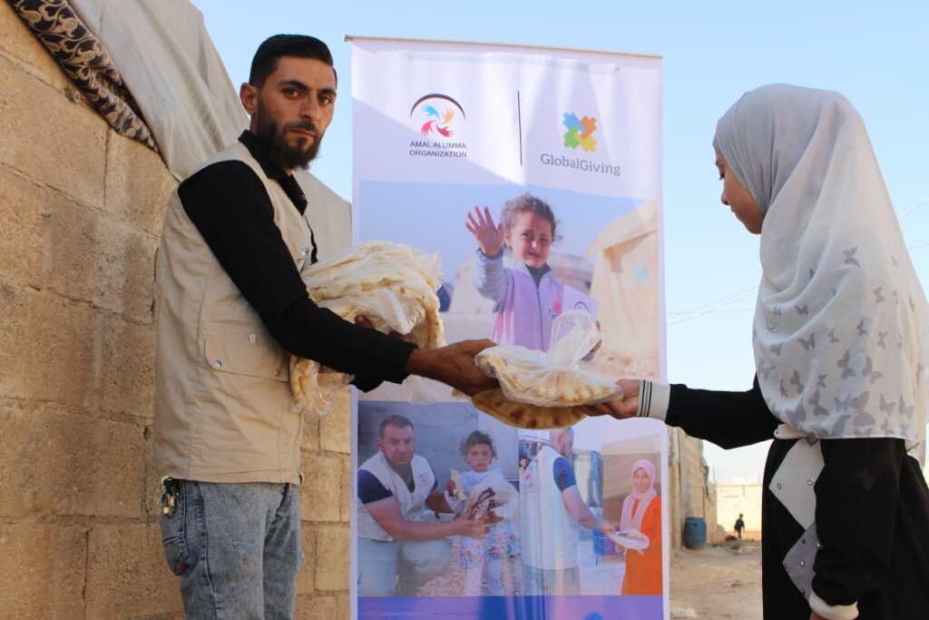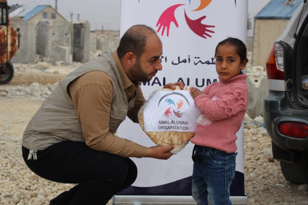 Despite difficult access and the lack of basic services, our organization managed to reach the camp and distribute fresh bread to Rania’s family and other vulnerable families in the area. The moment Rania and her mother saw our distribution vehicle arriving, they approached with steps filled with hope. This bread meant so much to them in a time where food is scarce and prices are rising.