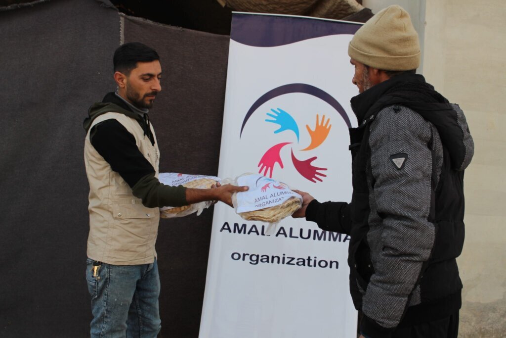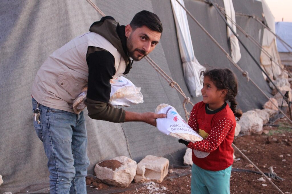 Amid the difficult living conditions faced by displaced families in Kafra Camp in northern Syria, we carried out a humanitarian initiative by distributing bread to the family of the young girl Rama, who lives with her parents in the camp.