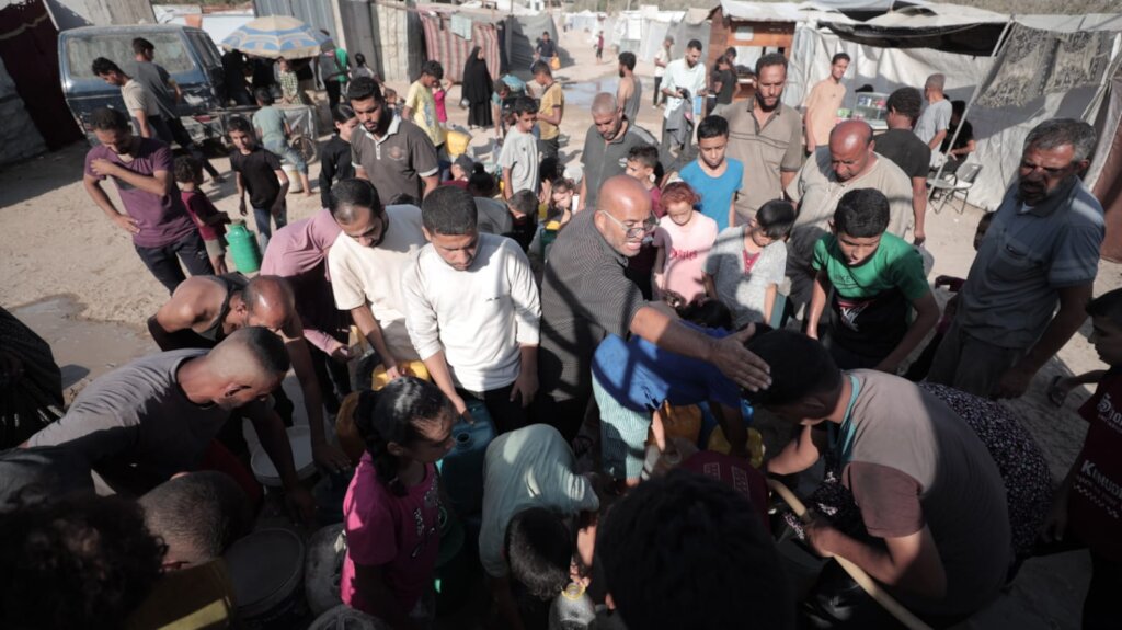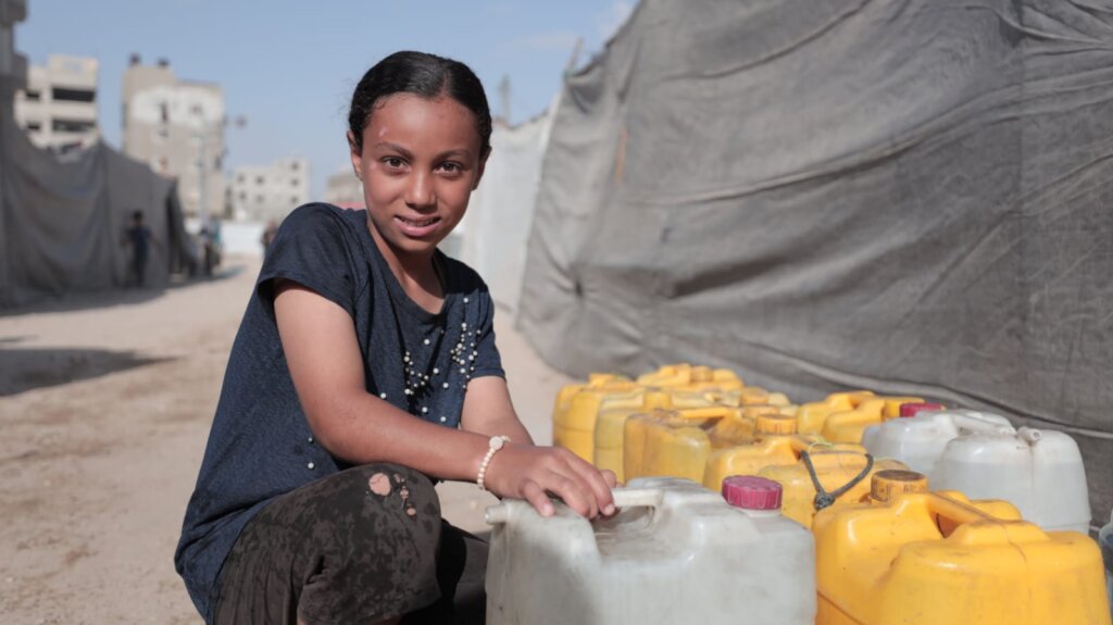 In the heart of Al-Bureij Camp in Khan Younis, central Gaza, little Rabi’a lives with her mother, aunt, and elderly grandparents under harsh conditions where families struggle to meet their most basic needs — especially clean water.