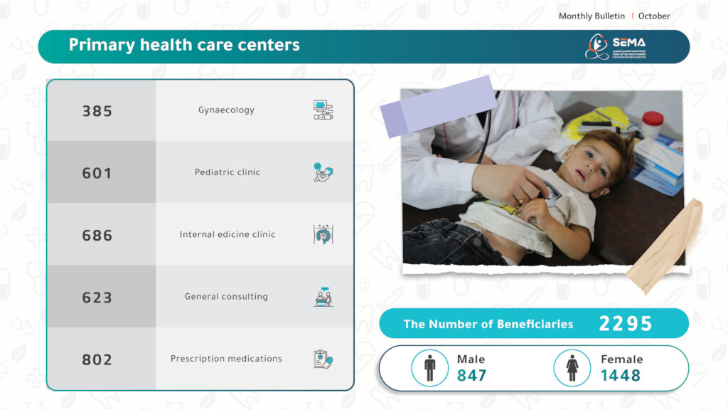 Because of your compassion and continued generosity, primary healthcare services remained a lifeline for thousands of families throughout October in northern Syria. Your support enabled SEMA’s primary health care centers to continue delivering timely, dignified, and essential medical care to communities facing ongoing hardship.