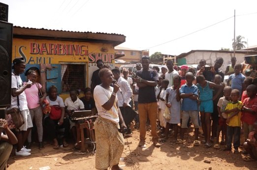The events took place in 7 communities in Western Area, including Eastern Police, Rokel, Waterloo, Godridge, Kissy, Wellington, and Calabatown. They went for approximately 4 hours, including initial music to attract crowds, song and dance performances with a message about loving each other and national pride by Freetong Players, a skit aimed at reducing stigma developed in partnership with IsraAID and Freetong, and a question and answer session facilitated by the Field Officers. All of the events can be described as a success, with crowds of over 100 people in attendance, and high levels of audience participation and engagement as observed by the Field Officers and the Project Manager. All of the questions and comments from community members at the conclusion of the events were positive towards the role of frontntline workers in the fight against Ebola, and reinforced the need for community cohesion. Many community members recognized the need to reintegrate and include those who had been pushed out and were willing to openly say they had not done enough to include them.