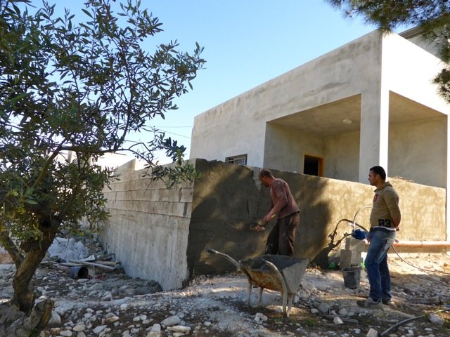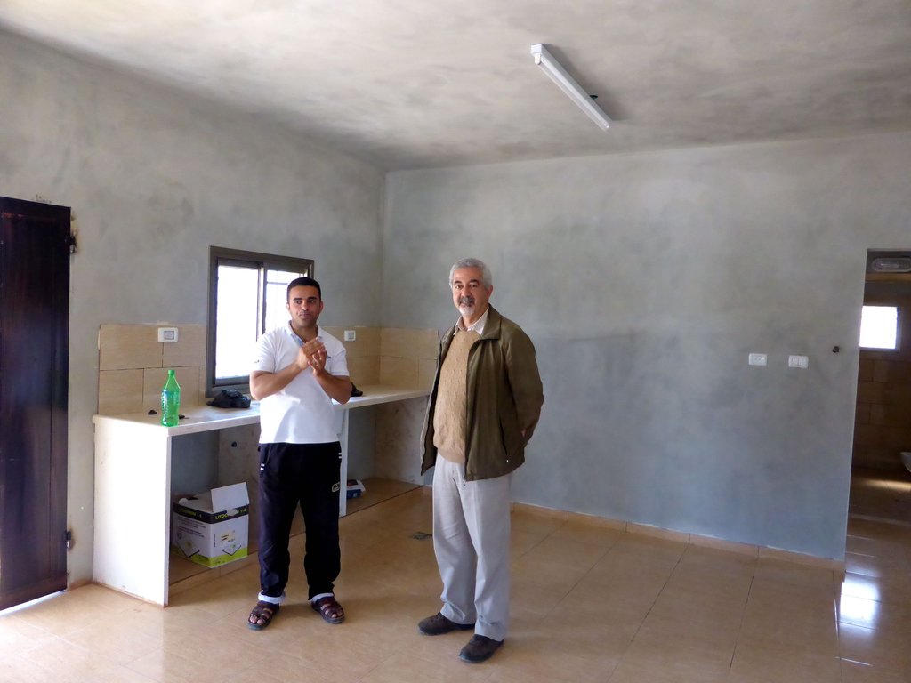 Rebuilding Alliance founding board member Ghassan Abdullah joined me for a walk-through with the Rebuilding to Remain families and a good discussion with Mayor Haj Sami. Next our award-winning architect, Hani Hassan, visited and joined us for a discussion with the families, Mayor Haj Sami and me, thoroughly reviewing the contract. When Mayor Haj Sami and I spoke with the contractor the next day, we were able to reach a fair agreement re. extra costs for this home. Finishing of the next two homes will see the Al Aqaba Community Assembly for Housing Displaced seeking bids and contracting directly with each craftsman instead of working with a general contractor.