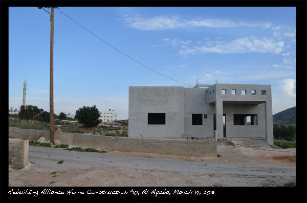 On Mar. 14, 2012, Al Aqaba Village became the first Palestinian village in Area C to issue building permits, realizing both the text and the spirit of the Oslo Accords. On Apr. 14, 2012, Rebuilding Alliance became the first group to provide mortgage loans, including a clause stating that if the home is demolished, the family will not make payments until occupancy is restored. I ask your help to make OPIC mortgage loan insurance available for Rebuilding Alliance’s Rebuilding to Remain mortgage loan program to fully develop this revolving mortgage loan program.
