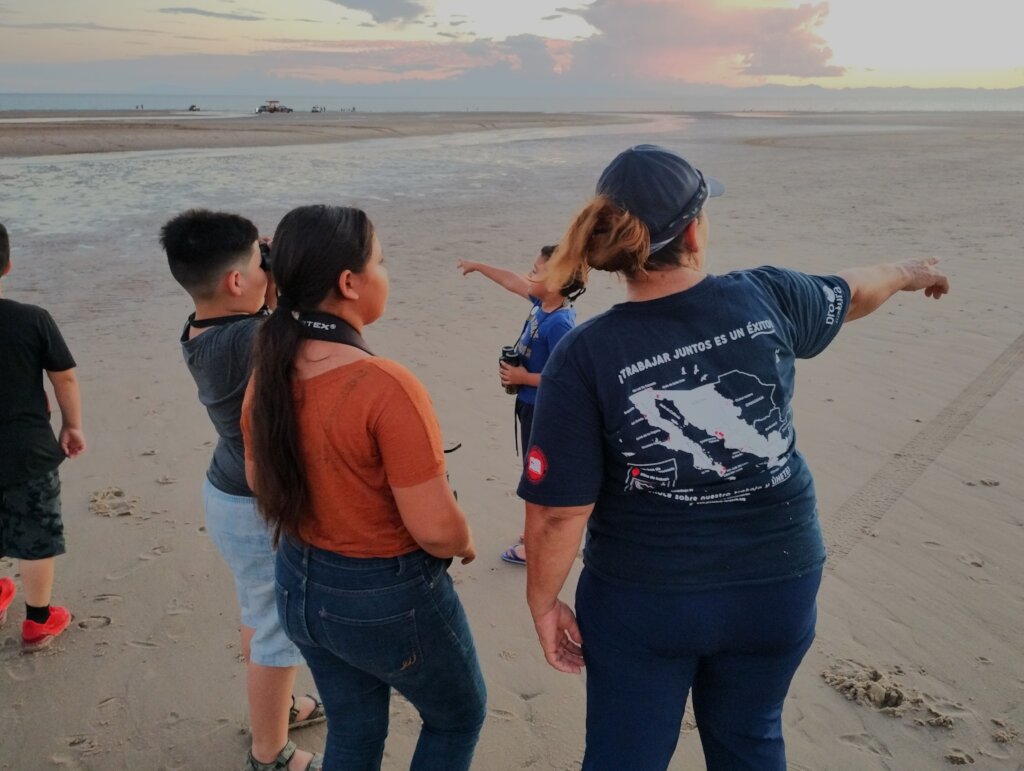 Over these past months, we’ve also carried out several environmental education and outreach activities. We led workshops during the DIF Summer Course, giving five sessions where we talked about the biodiversity that surrounds us. We participated in shorebird counts as part of World Shorebirds Day, and at the Bird Watching Circle, we discussed that topic. We also collect waste in the International Coastal Cleanup and visited community middle and high schools during National Conservation Week to share information and invite more young people to learn about the Protected Natural Area (ANP Spanish acronym) we live in, as well as about birdwatching and how they can take part through the Bird Watching Circle that we continue to hold on the beach every other Saturday.