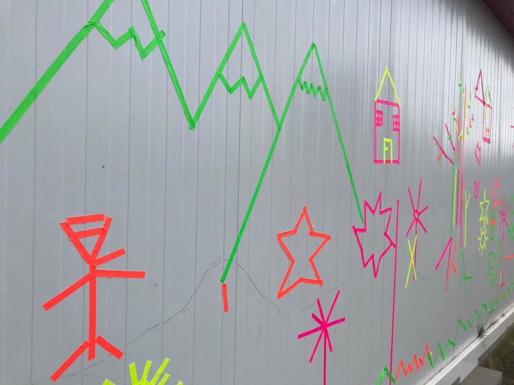 For this reason, Hannah and I are assisting Nehama in leading projects for the children to make public art in the shelter. This is not only a fun activity, but a way to personalize their temporary home. For example, we have painted the flower boxes with acrylics and made a tape art mural on one of the walls of the container together. The art projects are always voluntarily, but it always happens that kids become interested as we are setting up and when a few start, more join. As one could expect, the outdoor project always leads to some chaos, whether it is kids painting each other’s arms or someone taping outside the wall. Nehama tells us that while it can be tiring managing the children, she’s grateful that they are passionate about art and playing, even if they throw fits or make a mess. Most of the children that come to Art Therapy are still very young and may not have experience in formal education. It is in this space that they can learn how to listen and follow instructions, work in groups, and be creative without pressure. It is therefore Nehama’s hope and goal that Art Therapy also prevents children from difficulties adjusting to school in the future, where authority can be much less forgiving.