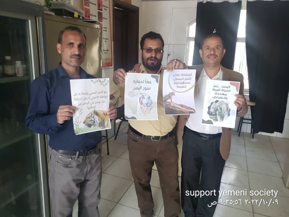 Support Yemeni Society Organization’s Team just wanted to thank you and GlobalGiving for your great support in implementing the humanitarian project “Rescue and Save Rare Yemeni Tiger from Extinction” The Support Yemeni Society Organization’s Team conducted several activities to achieve this noble mission. On Endangered Species Day on the 19th of May, they delivered two awareness-raising campaigns and a workshop on how to take action to protect threatened and endangered animals in Yemen.