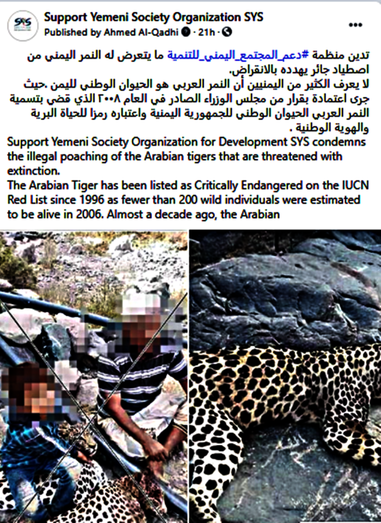 We at SYS Organization need to launch a national awareness-raising campaign about the importance of the Arabian Tiger and the dangers of poaching it especially, in Hajjah, Sa'adah, AlDhalea, and Abyan Governorates where the Yemeni Tigers still live.