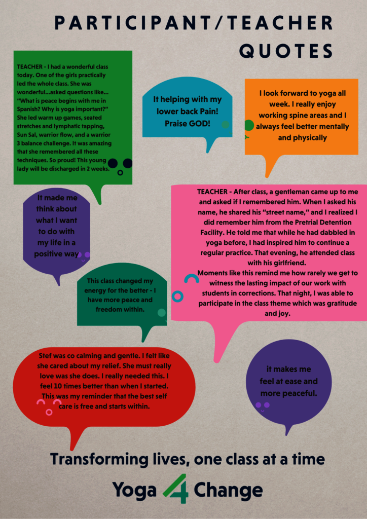In addition to quantitative data, Yoga 4 Change also collects qualitative data. See below for quotes from our students in Q4: