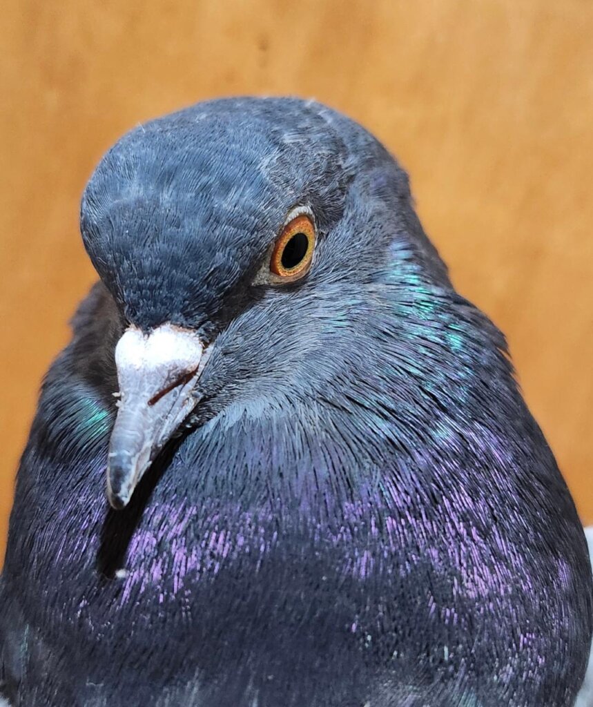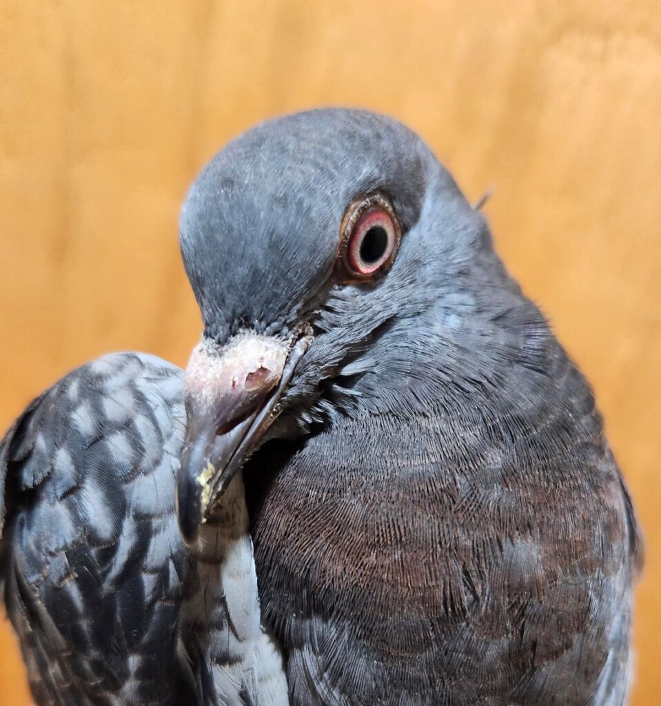 June 11: A beautiful white pigeon with some kind of dark colored “gunk” on its head and neck was hanging around on the patio of a residence in West Hills. Clearly, the bird was lost and had zeroed in on this residence as a safe spot to stay. The kind homeowner contacted us, volunteers were dispatched to help catch the pigeon and bring it to us. The “gunk” was something akin to roofing tar and was successfully removed. Transport miles: 160.