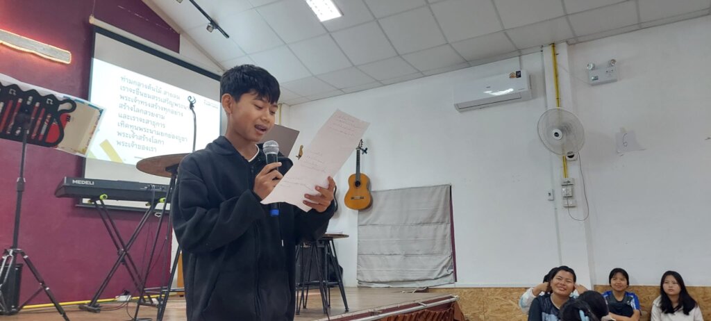 In August, the teaching centered on the story of David and Goliath, linking biblical faith with the concept of a growth mindset. Children who once said, “I can’t do it,” began saying, “I will try,” reflecting a shift from a fixed mindset to one of perseverance and growth. The story inspired them to see challenges not as impossible obstacles but as opportunities to learn and grow through effort and trust in God. As a result, more hesitant students raised their hands in discussions, encouraged their peers with positive words like “It’s okay, try again,” and displayed greater confidence. The children grasped the principle that failure is not the end but a teacher, and that faith in God provides strength to overcome life’s “giants.” Their behavior and group atmosphere reflected these values, showing both spiritual and emotional growth. A powerful testimony came from Tiw, a 14-year-old from a migrant Pa-O family. Once unruly and unmotivated in school, he gradually changed after attending Saturday School. Through learning about God, he discovered purpose, began to study with determination, and now dreams of contributing to his family and community. Holding onto Philippians 4:13—“I can do all things through Christ who strengthens me”—Tiw expressed confidence that with God’s help he can persevere despite obstacles.