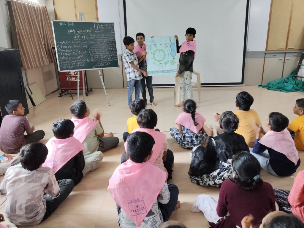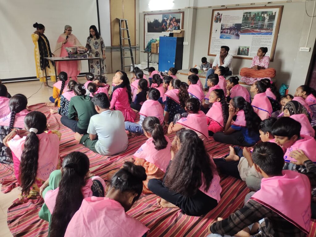 In August, a session on menstrual health was organized with 50 girls. Heli-ben from the ICDS department joined as a resource person and shared valuable guidance based on her experience.