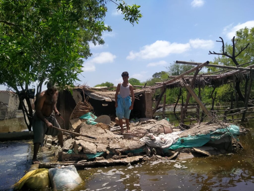![Floods damage houses]()