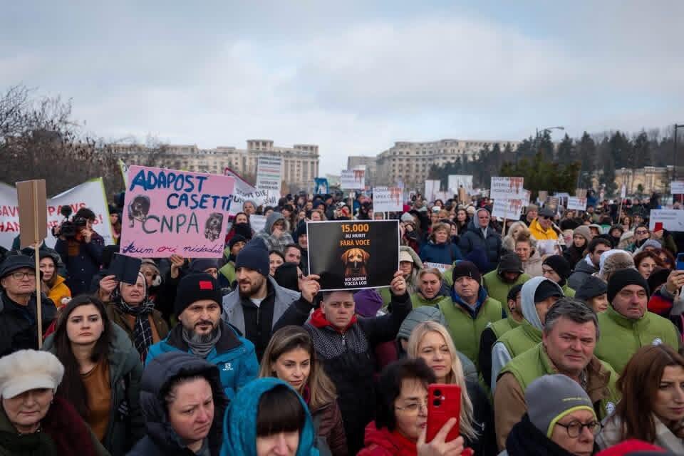 “Thousands of people gathered in Bucharest yesterday. From all corners of Romania, they travelled to the capital to make their voices heard. The reason was the horror in the public shelter Suraia, where as many as 15,000 dogs have been killed. Slaughtered for no reason! The news about this has reached all over the country. Images and testimonies have caused deep outrage. People are tired of government supervised animals being abused and even tax money being used for it. The demonstrators demanded transparency, responsibility and most of all change. They want this to stop. That animals will no longer be treated as street garbage, but as living beings with rights.”(Stichting Le Woef, February 2026)