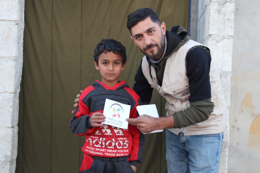 As part of our commitment to supporting orphaned children and the most vulnerable families in northern Syria, our team distributed a financial sponsorship to the orphaned child Hatem, who lives with his mother and his brother Fadel in Ihtimalat Camp in northern Syria, under extremely difficult living and humanitarian conditions.