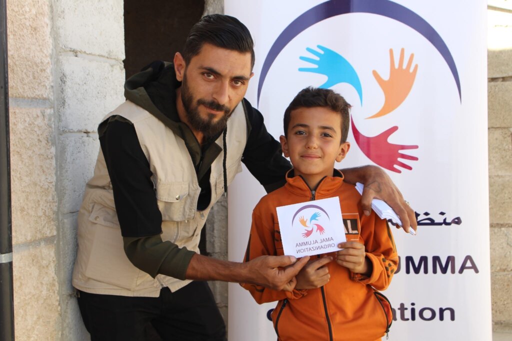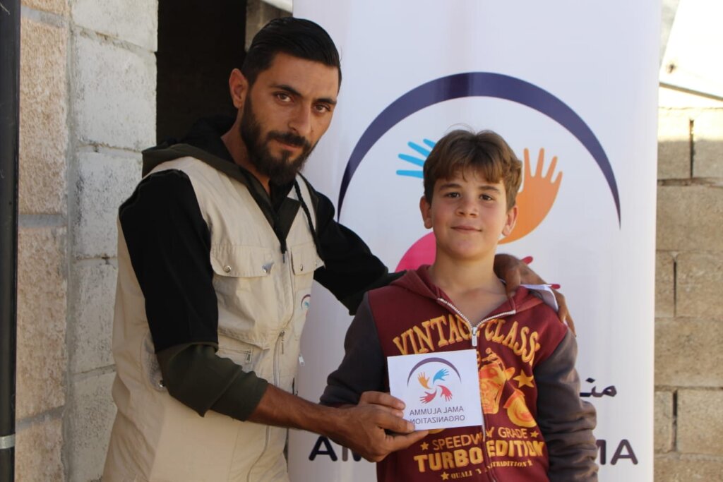 During our visit to the village of Kafrah in northern Syria, we met the child Saeed, a boy born an orphan in a land that has known nothing but war. His childhood has been filled with fear, and every night he goes to sleep remembering how his mother was struck by shrapnel, leaving a painful mark on her life and his.