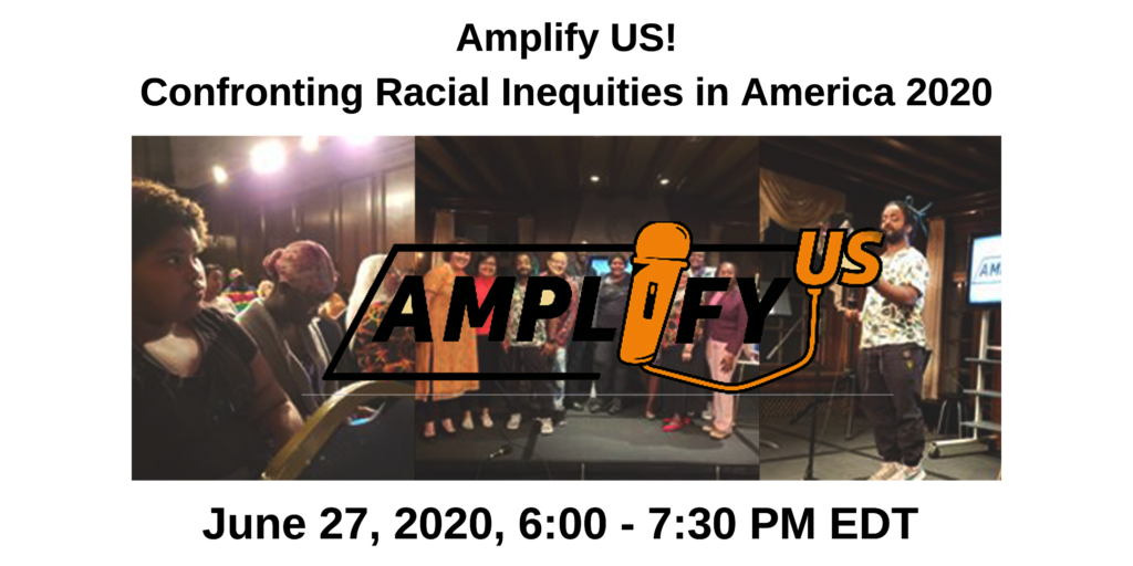 We wish to extend an invitation to join us in action at our next online Amplify US! performance and Town Hall on Saturday, June 27, 2020 from 6:00-7:30 PM. Story Tapestries presents performances by professional and community artists addressing the racial crisis sparked by recent deaths of Breanna Taylor, George Floyd and Ahmaud Arbery at the hands of police brutality, amid a global pandemic. The event will be hosted by award-winning poet and theater artist, Regie Cabico, with moderator, activist and racial equity facilitator, Carolyn Lowery.