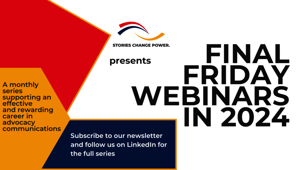 In July, we'll host our first in-person learning opportunity. Like the online cohorts you have supported, this in-person group will learn our people-centered, data-infromed, and research-backed approach to advocacy communications. In addition to broadening their network with peers in the cohort, they will have the option to be matched with a mentor to support them for one year.