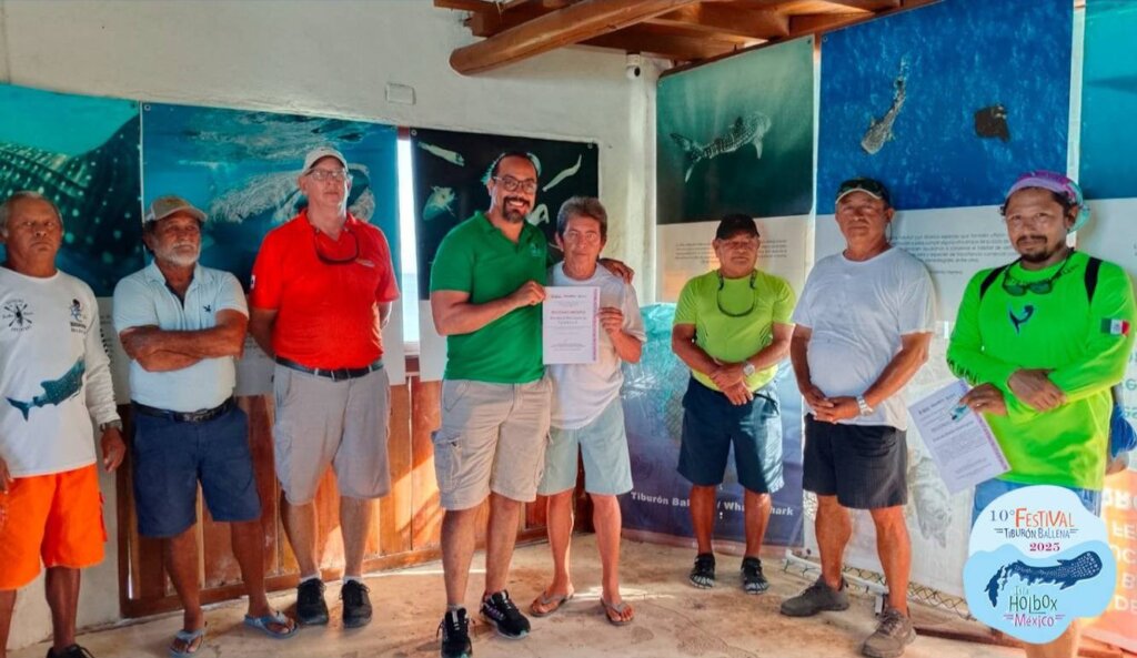 Regarding community strengthening, between 2023 and 2025, we participated in training 92 guides and captains in local communities, in biology and sustainable tourism, empowering them to promote best practices and serve as role models for whale shark conservation.