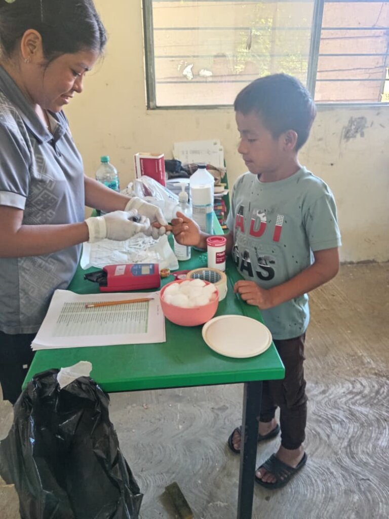 Previo a las jornadas, se brindaron indicaciones a las jtijawetik, quienes apoyaron en la organización del proceso, la toma de medidas y la participación ordenada de las y los niños. Se realizaron mediciones antropométricas (peso, talla y circunferencias) y pruebas de hemoglobina. Las madres mostraron interés en conocer los resultados y dar seguimiento a la salud de sus hijos.