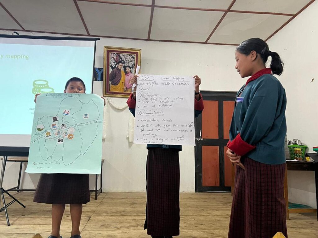 20 enthusiastic youths from Tang Central School, Bumthang engaged in discussions on pressing issues like the inaccessibility of clean toilets, academic stress, theft, and truancy from 3rd to 6th of October. Through problem tree analysis and creative performances, students highlighted how broken sanitation facilities disproportionately impact girls, leading to health problems such as urinary tract infections. The session emphasised the importance of hygiene, with students proposing inviting a health assistant to raise awareness about sanitation and sexual and reproductive health. They also discussed the responsibility of students in fostering a supportive and safe school environment for all. The workshop concluded with the production of four podcasts, allowing students to creatively express their solutions and experiences.