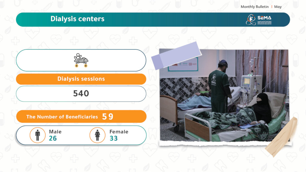 In the month of May alone, 540 dialysis sessions were provided free of charge, benefiting 66 patients and significantly improving their health and outlook on life.