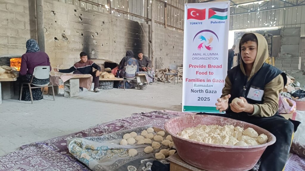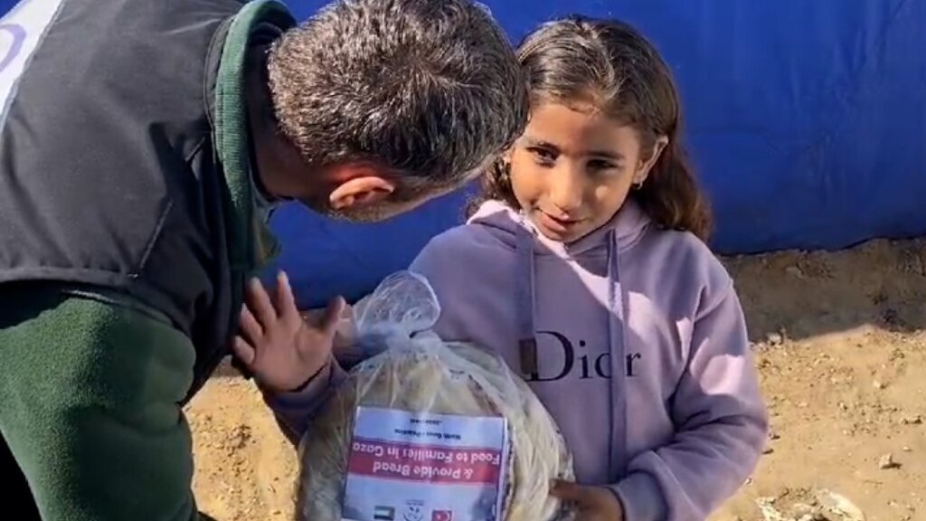 Today, we would like to share with you moments from the bread distribution to the family of Faten, a young girl who lives with her parents and four siblings in Al-Shuja’iya Camp, north of Gaza. Like thousands of other families in Gaza, they face harsh living conditions due to the blockade and food shortages, making it a daily struggle to secure a meal.