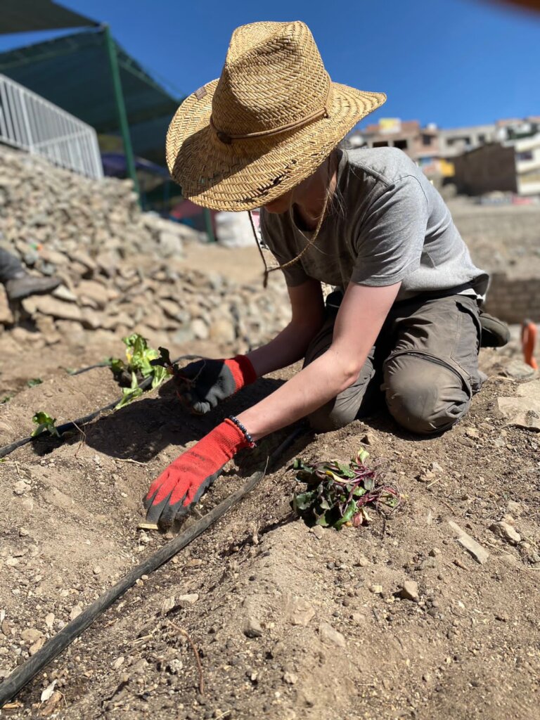 The first harvest in our fully-irrigated Plan Huerto is underway in Perú with the vegetables being used for meals for the children and the elderly. We are still in the trial period to find out which vegetables grow well in the desert conditions and have started hydroponic systems for herbs and strawberries. This is a major positive turning point in our work in Perú with sustainable plans as, due to the desert environment, showing that vegetables can be grown with drip-irrigation is a major step for the school and the community members.