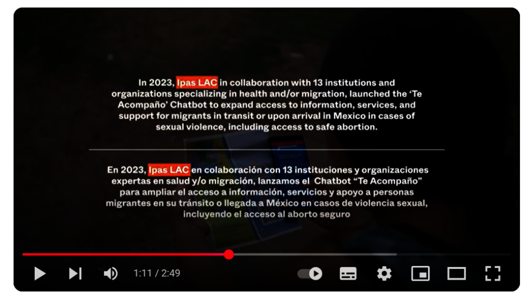 At Ipas Latin America and the Caribbean (Ipas LAC), we work to ensure that women and people who can become pregnant have access to accurate, rights based reproductive health information. Through this mission, Te Acompaño chatbot has become a vital tool for people navigating migration routes in Mexico. It connects users with clear guidance on sexual and reproductive health services, helping them understand their options and make informed decisions even in contexts where access to information is limited or confusing.