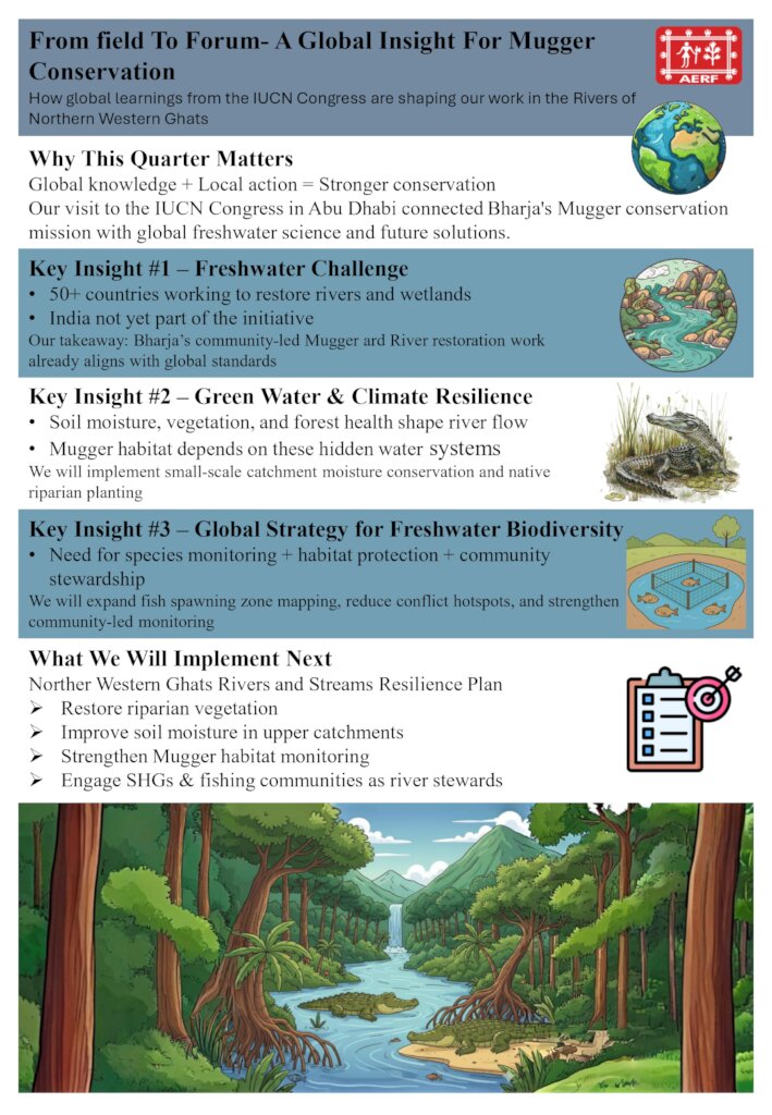 In the coming months, we plan to expand our documentation of fish diversity and map how species are distributed across the freshwater, brackish, and saline zones of the Bharja River. Through the Mugger Mission and our Core-to-Shore conservation strategy, we aim to protect not just a single species, but the entire river system that connects forests, rivers, mangroves, fish, and crocodiles into one functioning ecosystem.