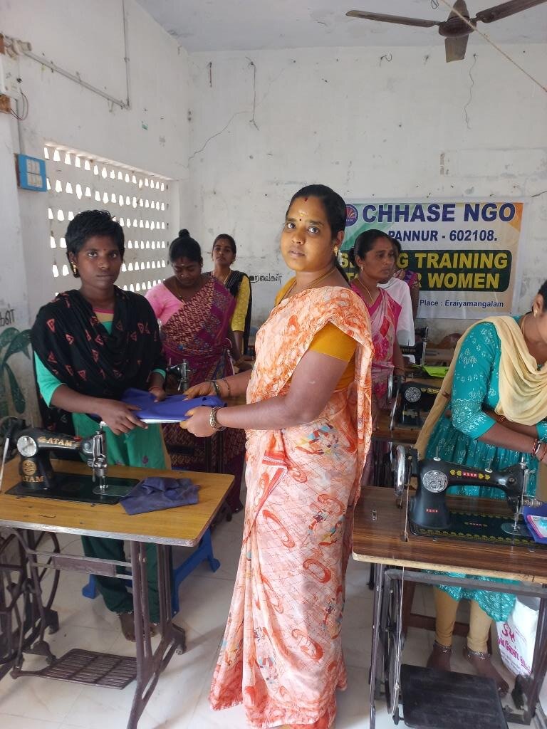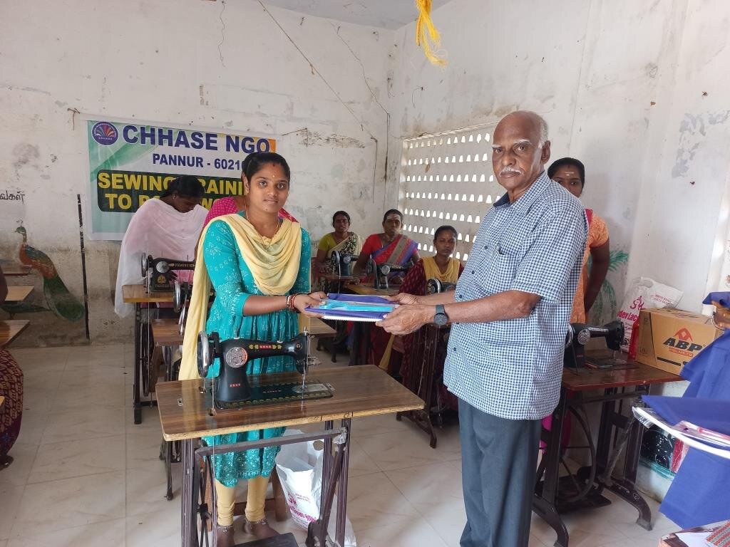 But even after getting training I was unable to start sewing business without sewing machine. My family condition not allowed me to buy sewing machine, on hearing my condition from my neighbors, CHHASE has provided me a sewing machine freely”.
