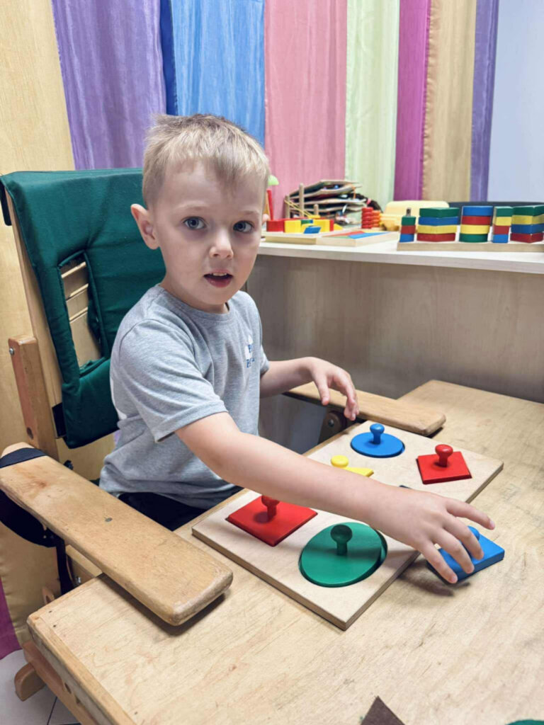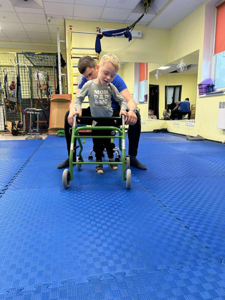 One of these children is Vladislav from eastern Ukraine. In 2016, at just four years old, he suffered a severe traumatic brain injury in a car accident. After multiple complex brain surgeries and eight months in a coma, he lost all previously acquired skills. The accident left Vladislav with permanent disabilities, making him fully dependent on his mother, Alina. Since then, Alina has devoted her life to his rehabilitation. Step by step, Vlad has regained some speech, strengthened his body, and continues to make progress. When war destroyed their hometown, they were forced to flee, yet Alina continues to fight tirelessly for her son’s recovery and dignity.