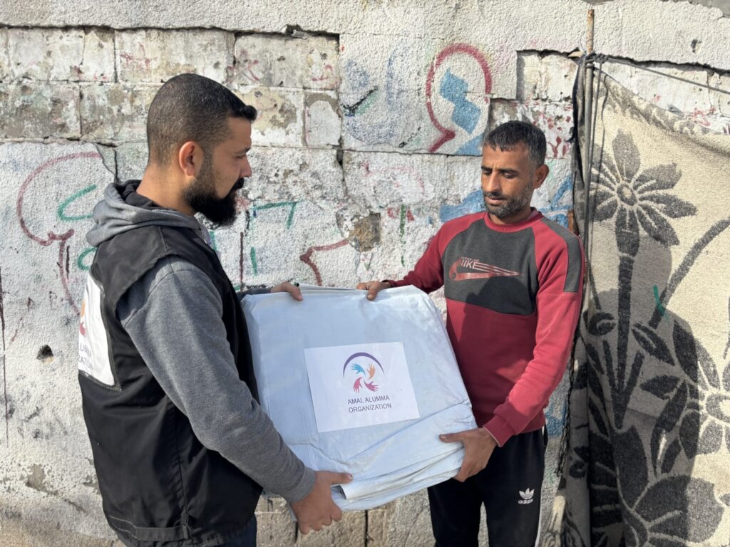 In the displacement camps of the Gaza Strip, safety is not measured by solid walls, but by a single tarpaulin that shields an entire family from rain and wind. Amid these harsh conditions, and thanks to your generous support, we distributed a rainproof tarpaulin to Mr. Hassan and his family, who are living in Al-Mukhtar Camp, as an urgent humanitarian step to protect them from rainwater seeping into their simple shelter.