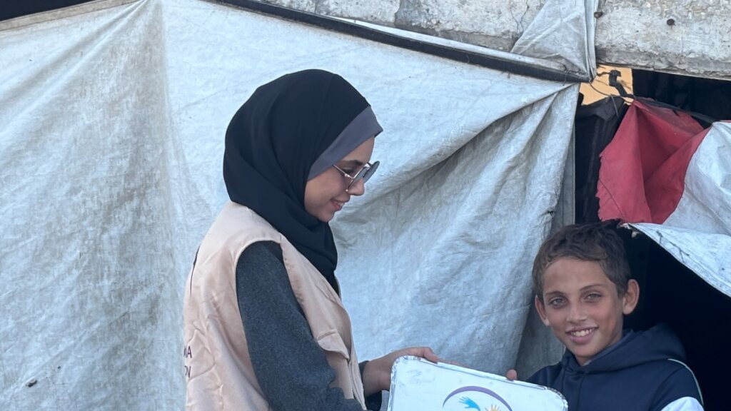 During our recent distribution of hot meals, Rami’s family welcomed our team with gentle smiles despite the exhaustion clearly etched on their faces. We provided them with a freshly prepared dish of rice and meat, meant to help them get through another difficult day under worsening conditions. Rami sat beside his siblings, showing a rare moment of comfort—almost as if he had recovered a small piece of the safety he has lost since the crisis began.