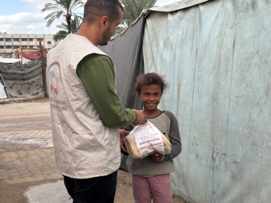 Thanks to your generous support and donations, our team was able to distribute bread to the family of Hala, who lives with her parents and her brother Yaseen in Abu Jmeza Camp in Deir al-Balah, Gaza.
