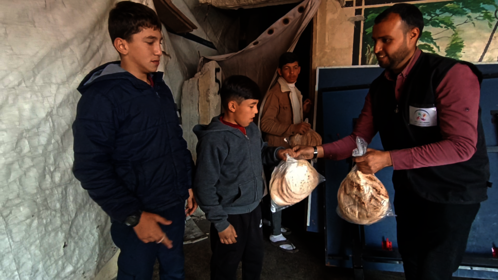 The three children lost their father in an airstrike a year and a half ago, and since then, they have been struggling to secure the most basic necessities. Thanks to your generous contributions, we were able to provide bread for this exhausted family. That simple act carried profound meaning. As Mohammed held the bread, it was as if it reassured him that they were not forgotten in their suffering.