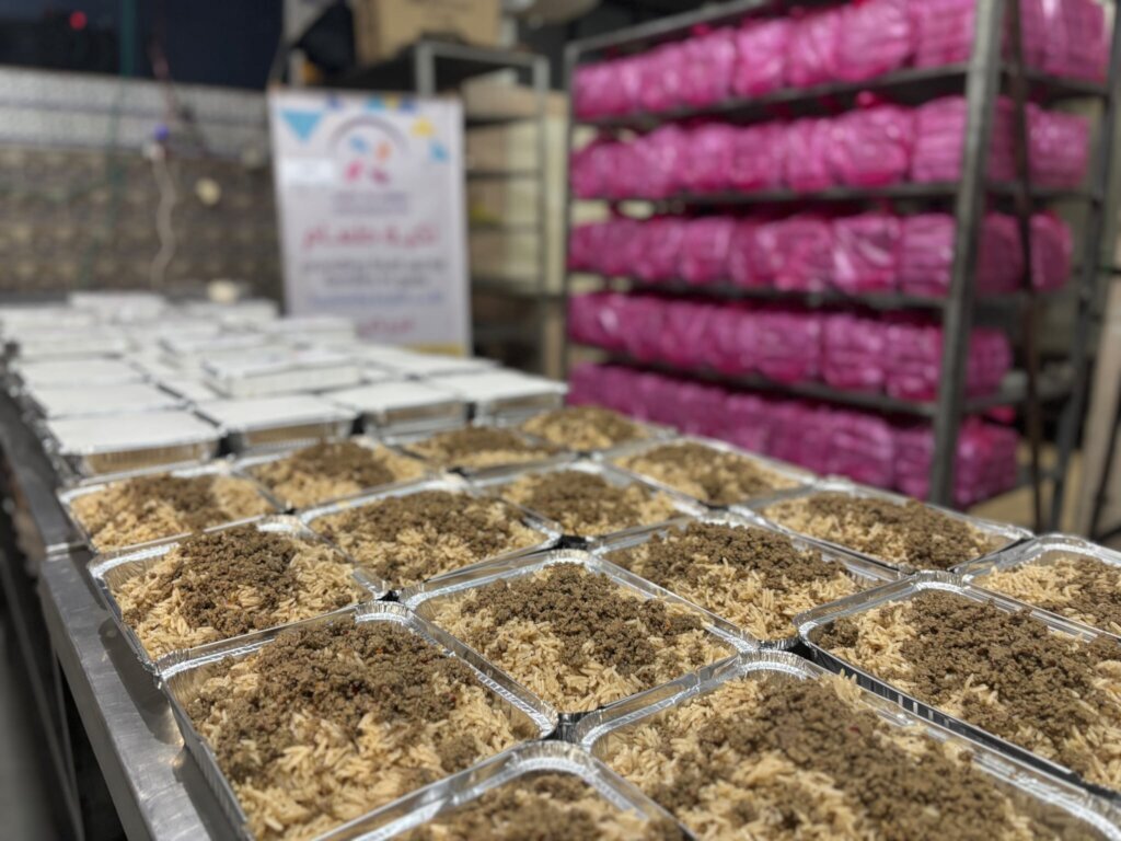 Amid the extremely difficult humanitarian conditions faced by residents of Al-Mahabba Camp in northern Gaza, we were able—thanks to the presence of wonderful people like you—to carry out a humanitarian initiative by distributing hot meals of one of Palestine’s most beloved traditional dishes: Musakhan.