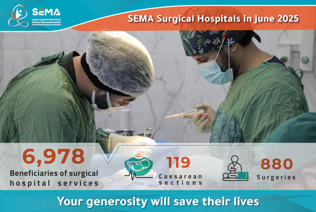 In June alone, your support enabled us to perform 999 free surgeries across Syria — life-changing procedures that relieved pain, restored dignity, and saved lives on the brink.