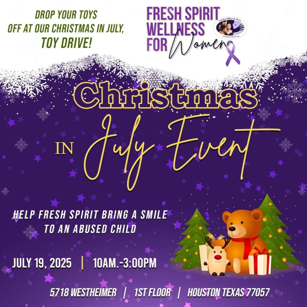 Join us in spreading mid-year holiday cheer! Fresh Spirit Wellness for Women is kicking off the season of giving early with our Christmas in July Toy Drive on Friday, July 19th, from 10AM–3PM, and we need your help! This festive summer event jumpstarts preparations for our 21st Annual Christmas Toy Drive in December. By donating now, you help us begin filling our giant Christmas toy bags with love, hope, and joy for the amazing children of the courageous clients we serve.
