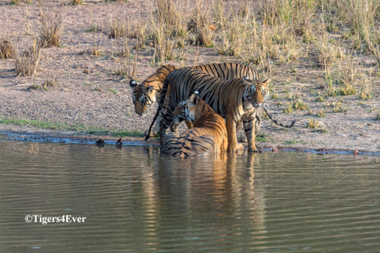 If 500 people could read this report and donate just £10 ($13) per month each it would take just 3 months to raise enough funds to construct 1 more medium to large wildlife waterhole and that would be incredible: https://www.globalgiving.org/projects/water-for-bandhavgarhs-tigers/?show=recurring. Permanent wildlife waterholes are critical to preventing tiger-tiger and human-animal conflict, which arise from increased wild tiger numbers. There are more tiger cubs (82) in Bandhavgarh than the total number of wild tigers (37) counted in the 2010 Tiger Census, when Tigers4Ever started work there. One waterhole isn’t enough to reduce the conflict caused by wild tigers encroaching on the territories of other tigers and humans, so we need your help to provide at least 2 more waterholes before it is too late for the wild tigers and other wildlife: https://www.globalgiving.org/projects/water-for-bandhavgarhs-tigers/.