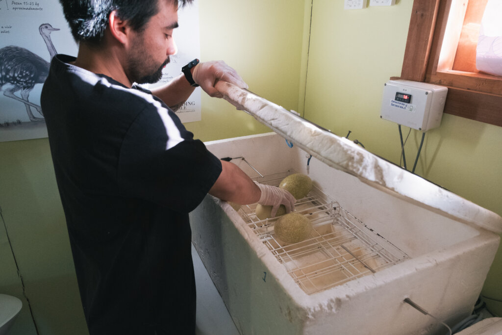 By mid-November, the program reached an exciting milestone: 63 live chicks are thriving under the care of the Quimán team. Once they are strong enough, they will be transferred to Patagonia National Park, where they will join the population of rheas already reintroduced earlier this year.