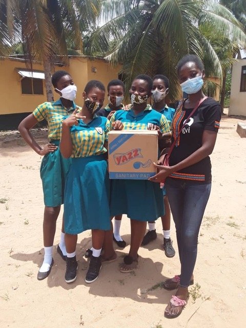 As our donors and supporters will be aware, we run a program of menstrual health education and distribution of sanitary products for female students at our local partner schools in Kokrobite. The program allows for all girls of 11 years plus to participate in educational workshops to discuss reproductive and menstrual health and to be offered advice and guidance on safe and hygienic good practice. In addition, each school is provided with sanitary pads, sanitized wipes and other resources to distribute to female students as and when they experience their monthly reproductive cycles. However, with schools shut due to the global pandemic, female students have been at home, often being supported by family members who have seen their employment and income opportunities reduced by the pandemic, and so many of the girls have been unable to access the sanitary resources they need.