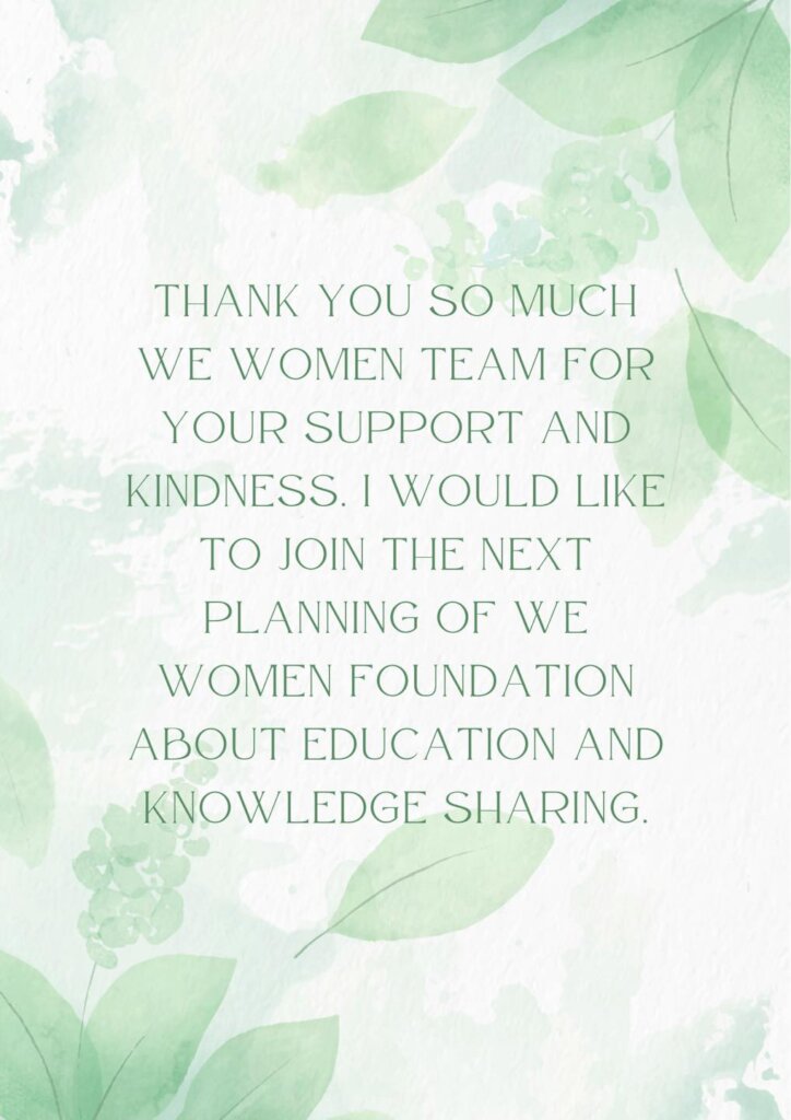 We are thankful for everyone who has been supporting us the past year and we can’t tell you enough how important your continuity is to our women. Warm regards Ursula and the We women team