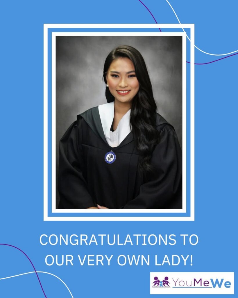 We are thrilled to announce that Lady has recently graduated! She's been a valuable member of YouMeWe, managing daily tasks in the Philippines and supporting the homes we assist.